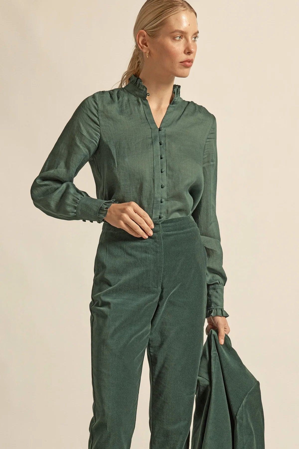 - full-length sleeves finished with a ruffle trimmed cuff adds cohesion