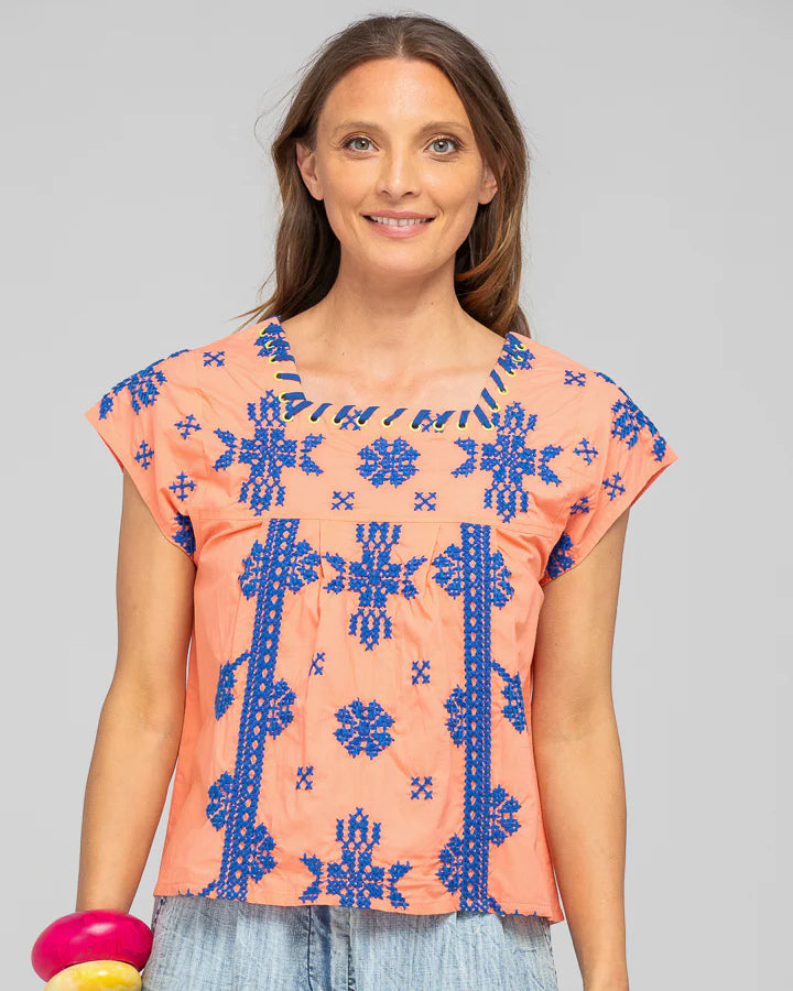 The Boom Shankar Amore Top is a standout piece this season with incredible contrast embroidery and laced eyelette detailing.