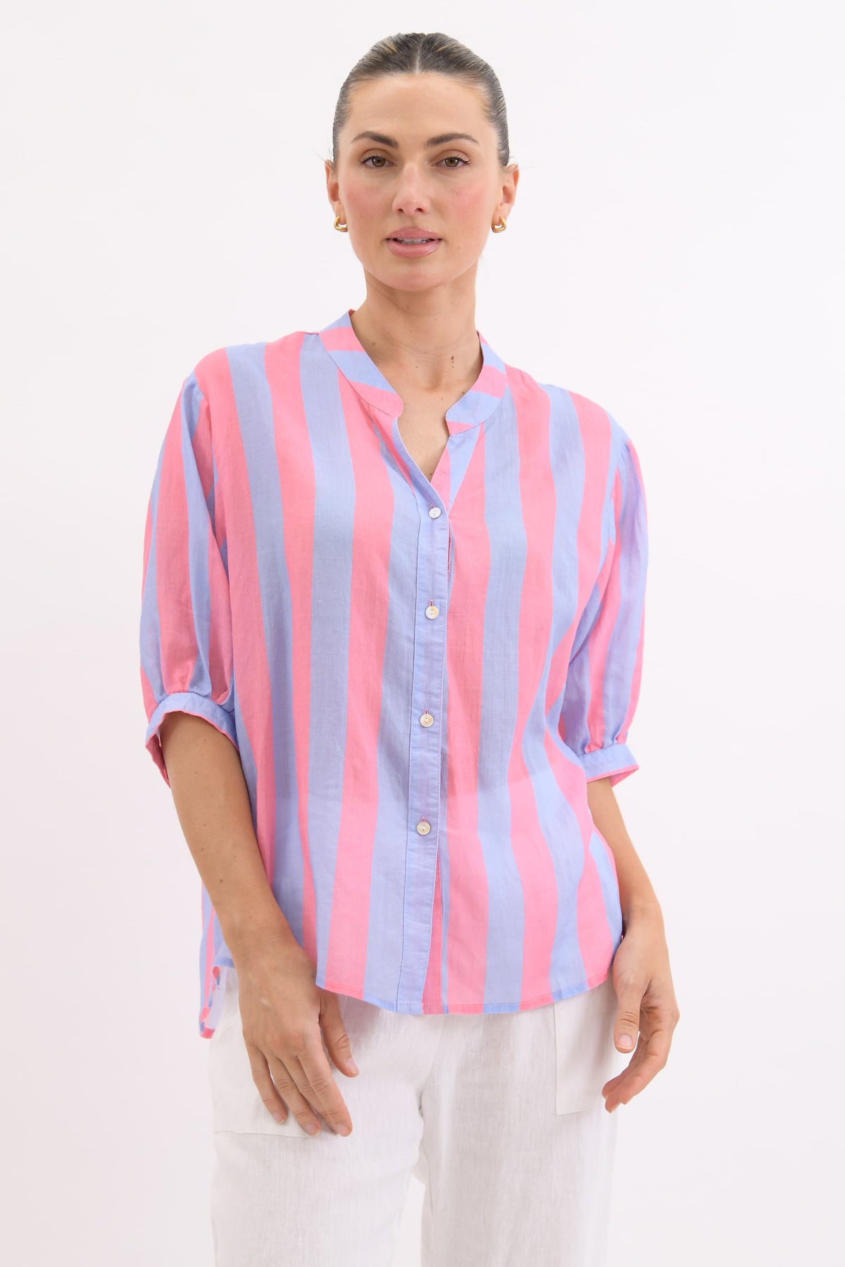 Add a bit of fun to your look with the Stripe Dorothy button through linen shirt.