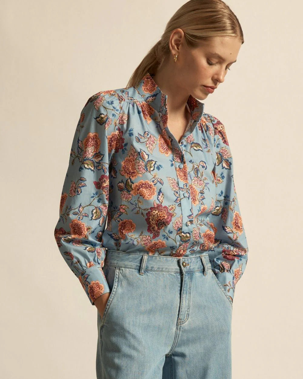 ·        full-length sleeves finished with a wide cuff that echoes the collar